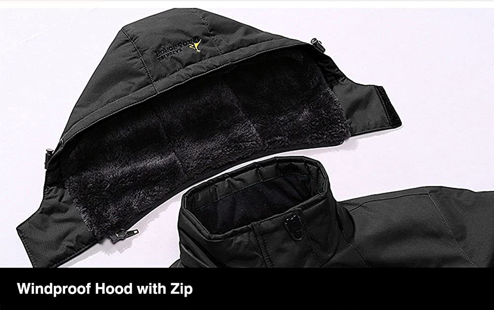 Windproof: Adjustable cuffs with hooks and loops; Internal drawcord hem, detachable and adjustable storm hood help to keep wind out. Note: Zipper on the Left side