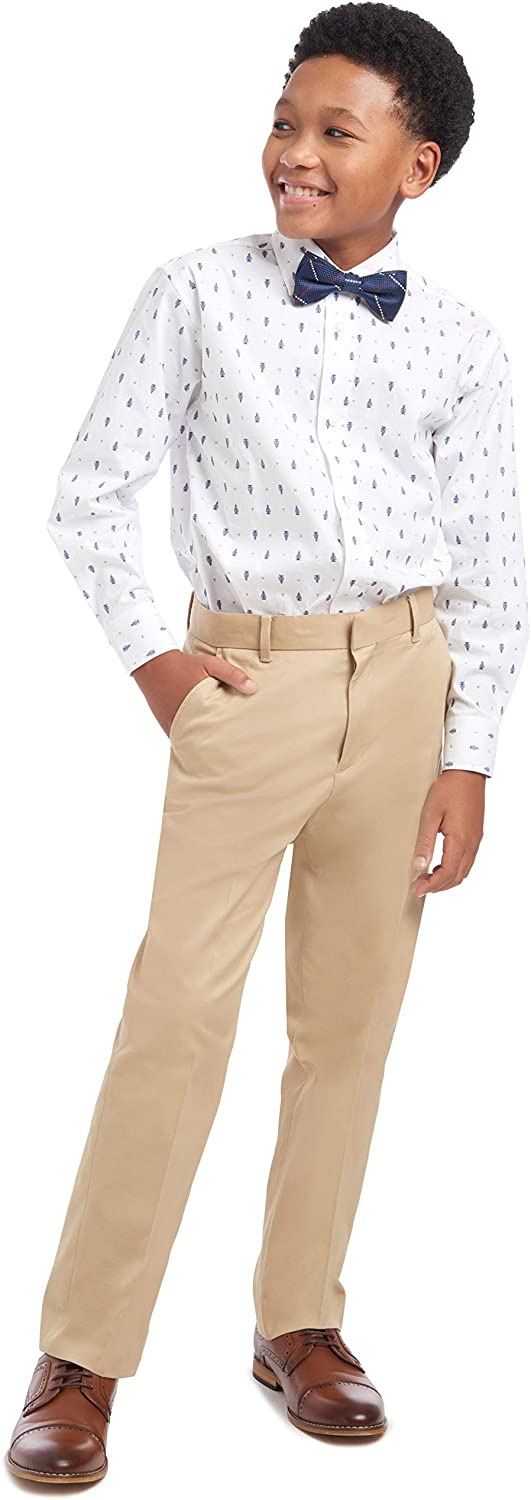 - A DRESSWEAR STAPLE: Featuring a classic straight leg fit, belt loops, and slant front pockets, our Flat-Front Twill Dress Pant is a classic boys wardrobe staple and is the perfect pant to dress up for special occasions.