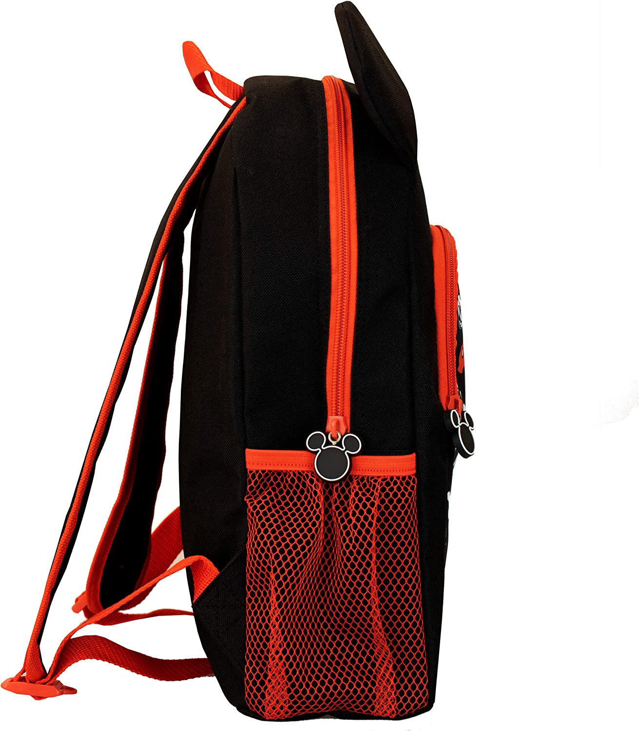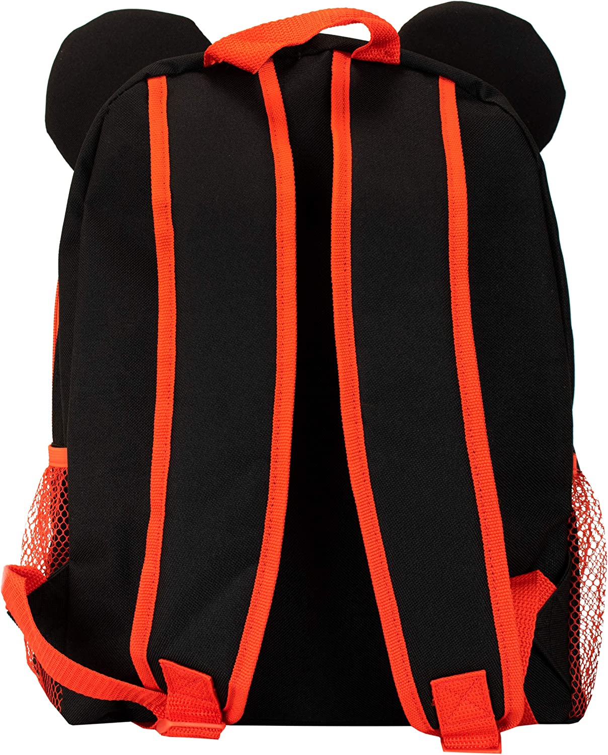 Boys Disney Mickey Mouse Backpack. This fun Mickey Mouse rucksack is the perfect companion for any Disney fan. With Mickeys iconic 3D ears and an awesome all over print of Mickey and his hands on the front pocket, this rucksack is a must have for those who love the No.1 Disney mascot! This black Mickey Mouse bag has two mesh bottle pockets and a spacious main compartment with a front pocket meaning it’s great to take to school, on holiday and sleepovers! Suitable for ages 3+