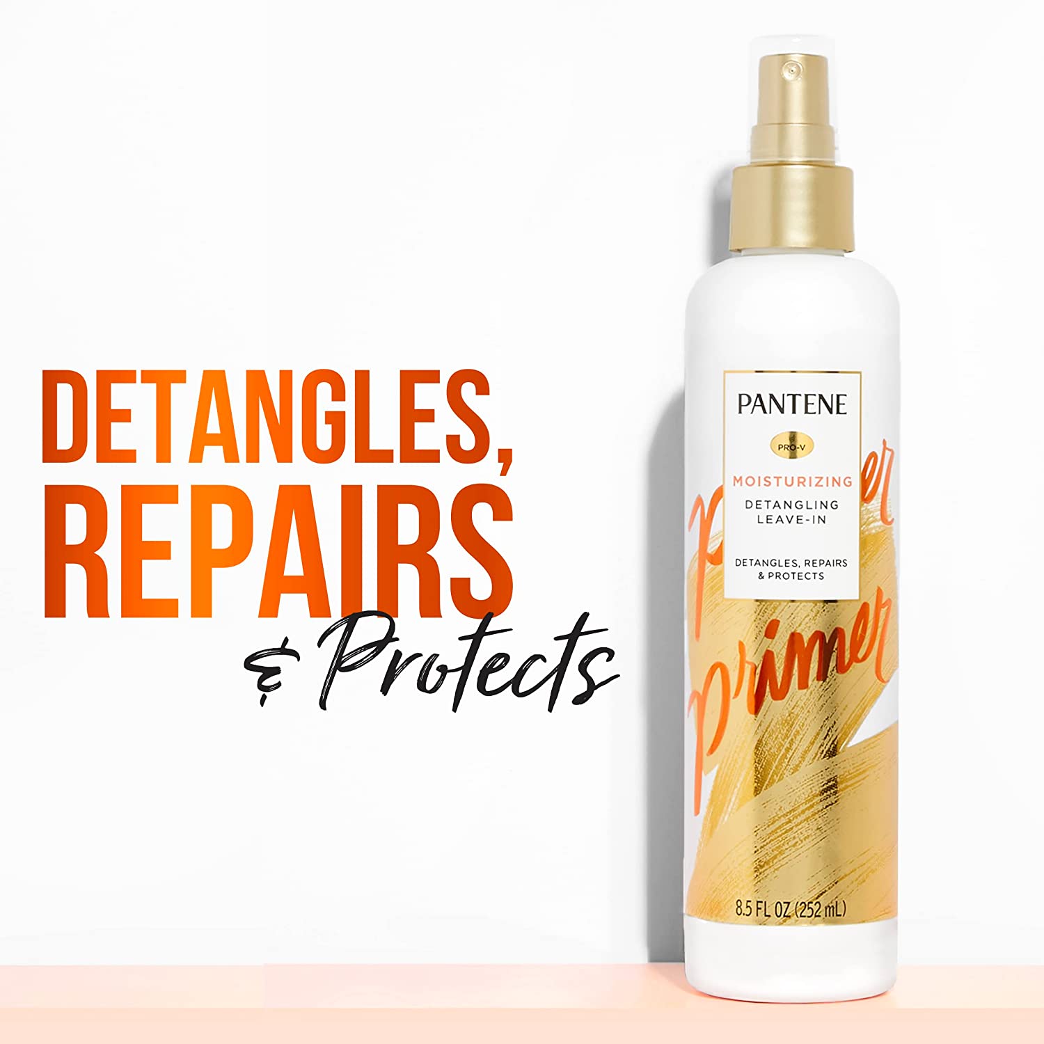 Spray some repair into your hair care. Help stop damage with Pantene Pro-V Nutrient Boost Repair & Protect Detangler. This leave-in conditioning mist treatment separates hair strands for easy styling, and it helps restore your hair to be soft and smooth with a healthy-looking shine. Enriched with antioxidants to reduce protein loss, Repair & Protect Detangler helps hair stay stronger against damage. The lightweight formula helps transform hair from dry and brittle to healthy and soft for a #greathairday. vs. non-conditioning shampoo.