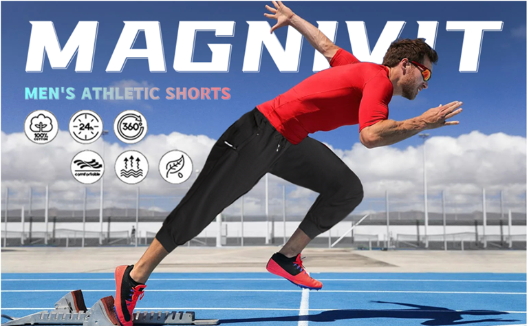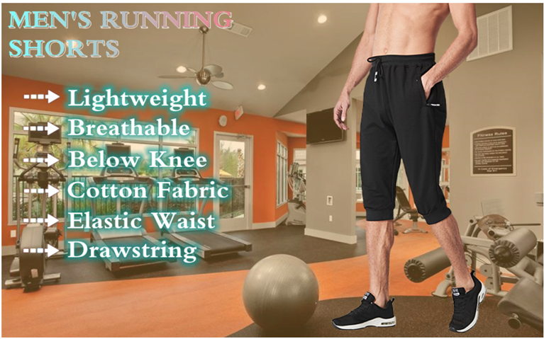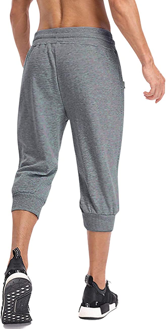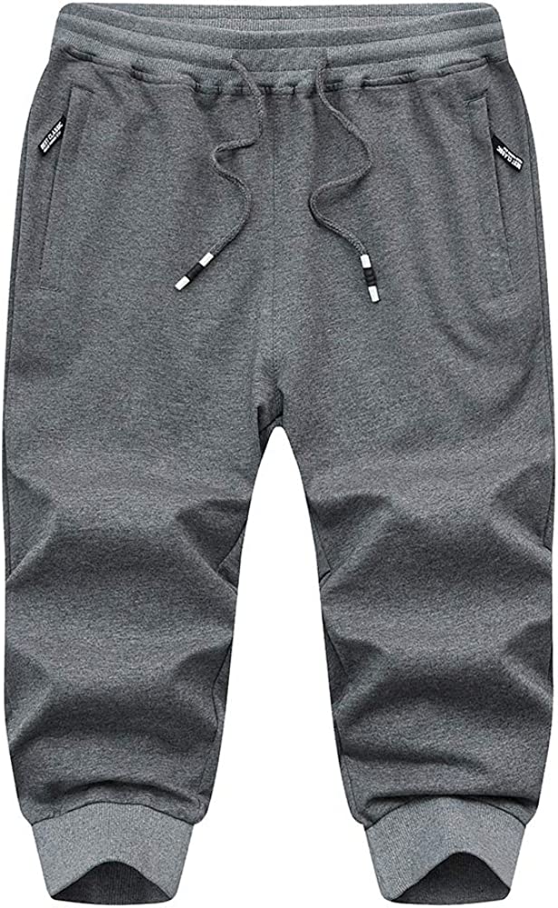 MAGNIVIT Men's 3/4 Jogger Capri Pants Workout Gym Below Knee Shorts Zipper Pockets
