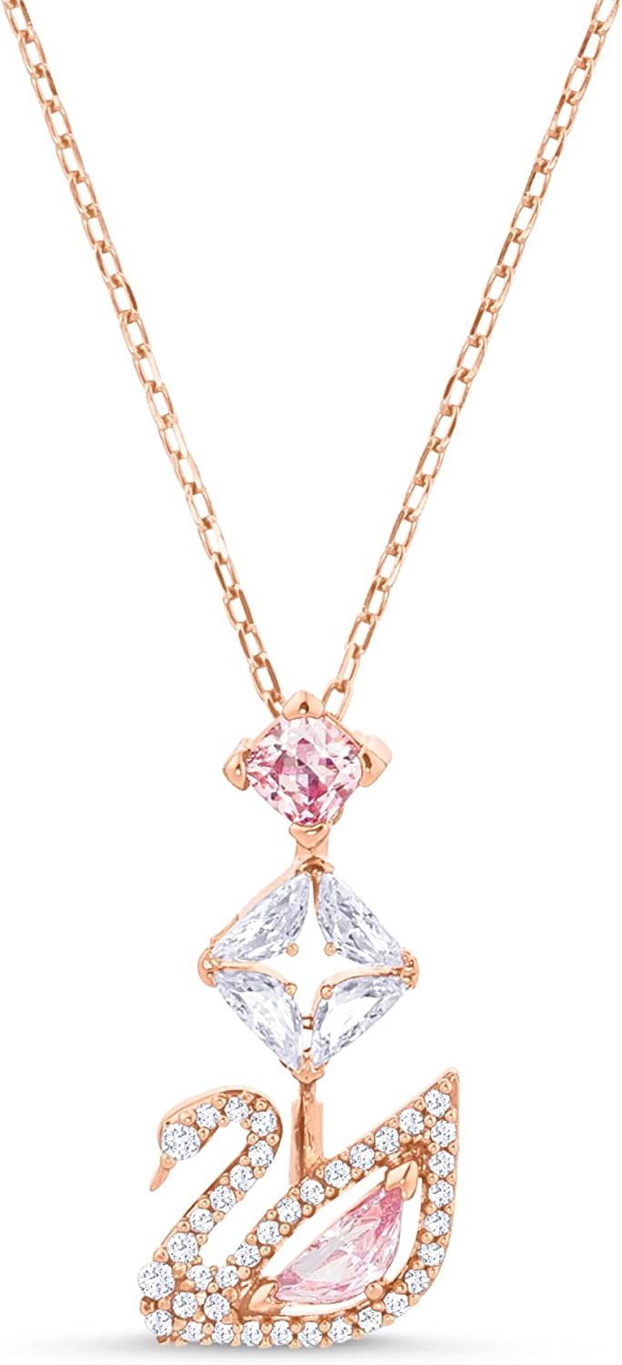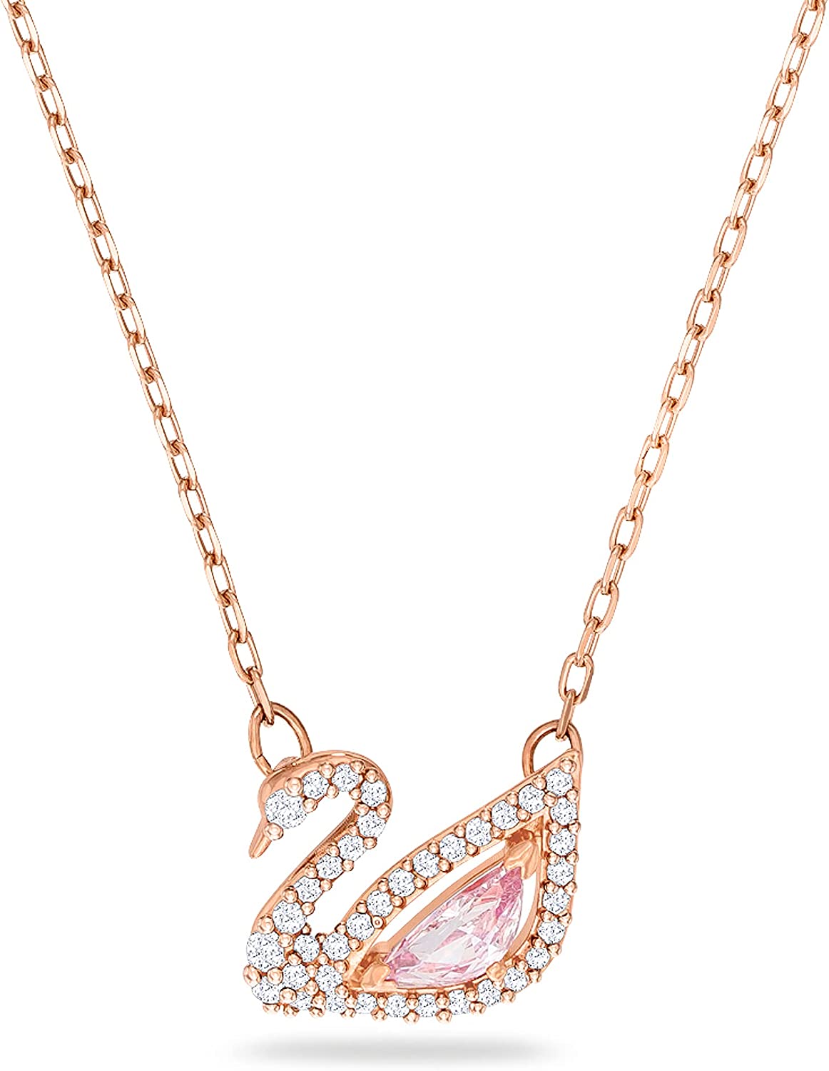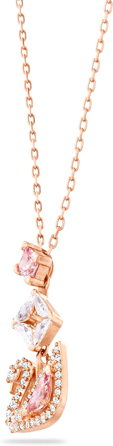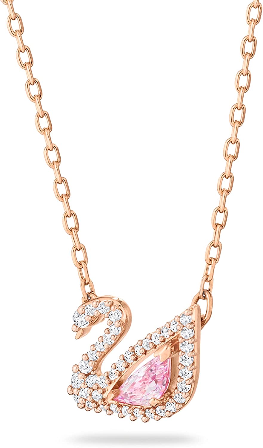 • Items delivered: 1 x Swarovski Dazzling Swan Collection Pendant, 14 7/8 inch rose-gold tone plated chain, 7/8 x 5/8 inch pink and clear crystal swan pendant, with Swarovski necklace box