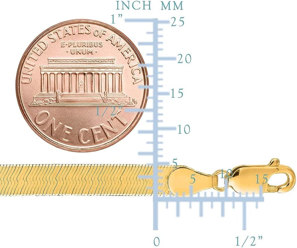 The Diamond Deal 14k Solid Yellow Gold 6.00mm Shiny Imperial Herringbone Chain Necklace or Bracelet for Pendants and Charms with Lobster-Claw Clasp (7", 8", 16", 18" 20" or 24 inch)