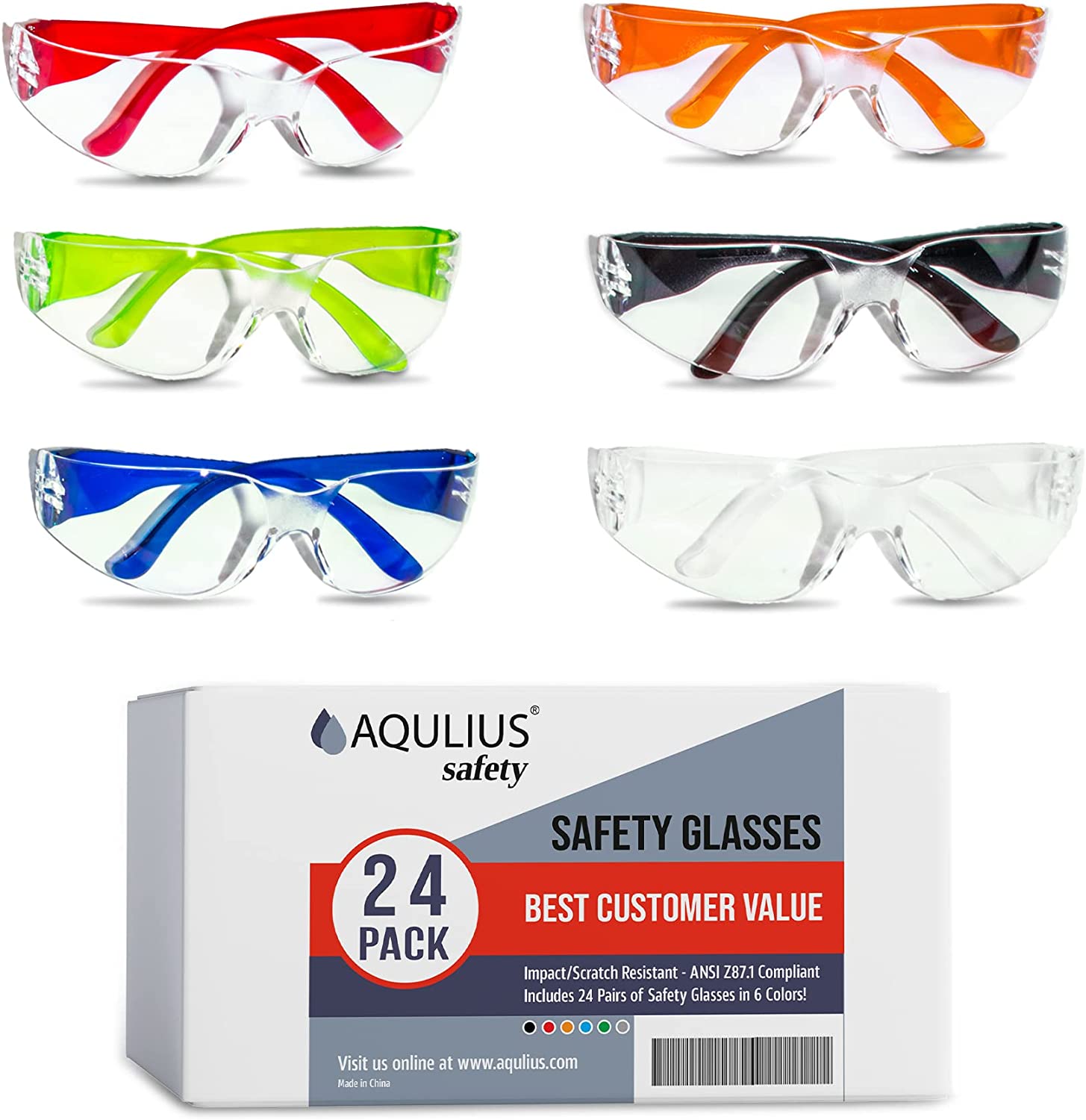 BULK PACK OF 24 IN 6 DIFFERENT COLORED FRAMES - Get 2x The Safety Glasses at a Fraction of the Price! Our Protective Frames Come in Black, Red, Orange, Blue, Green, and Gray.