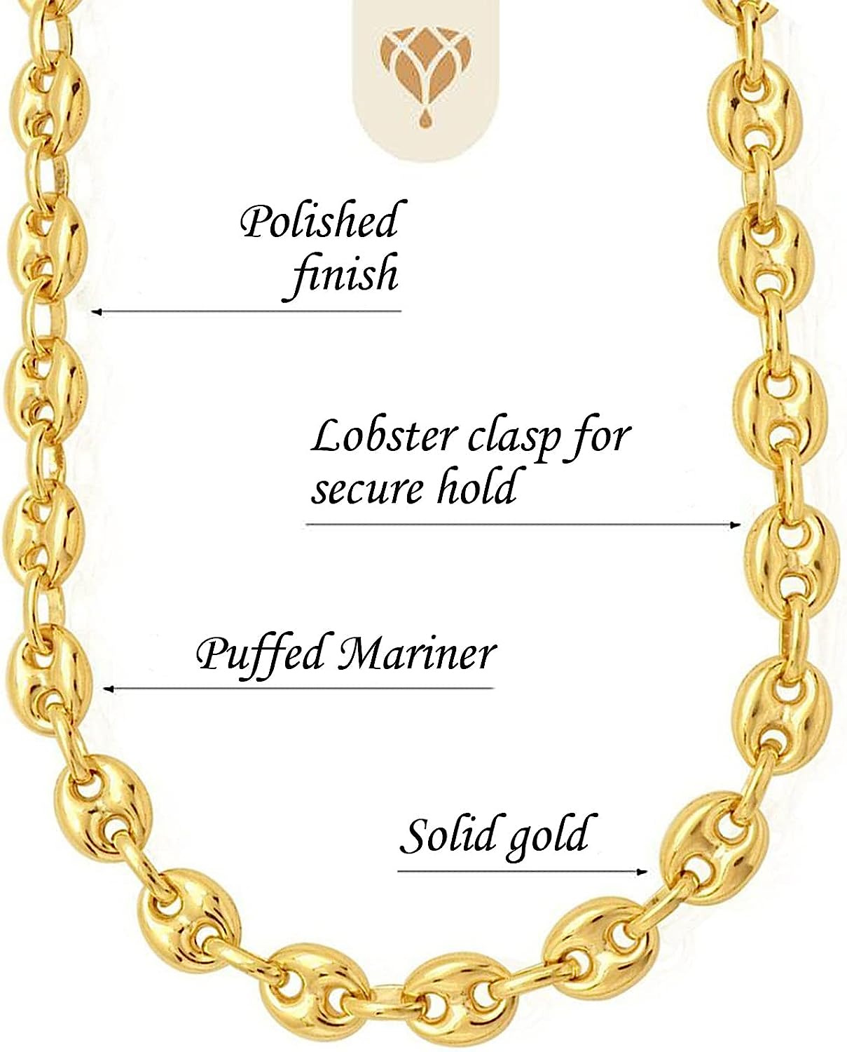 The Diamond Deal 14k REAL Yellow Gold 11.0mm Shiny Puffed SOLID Mariner Chain Necklace or Bracelet Bangle for Pendants and Charms with Lobster-Claw Clasp (8.5", 20", 22" or 24 inch)