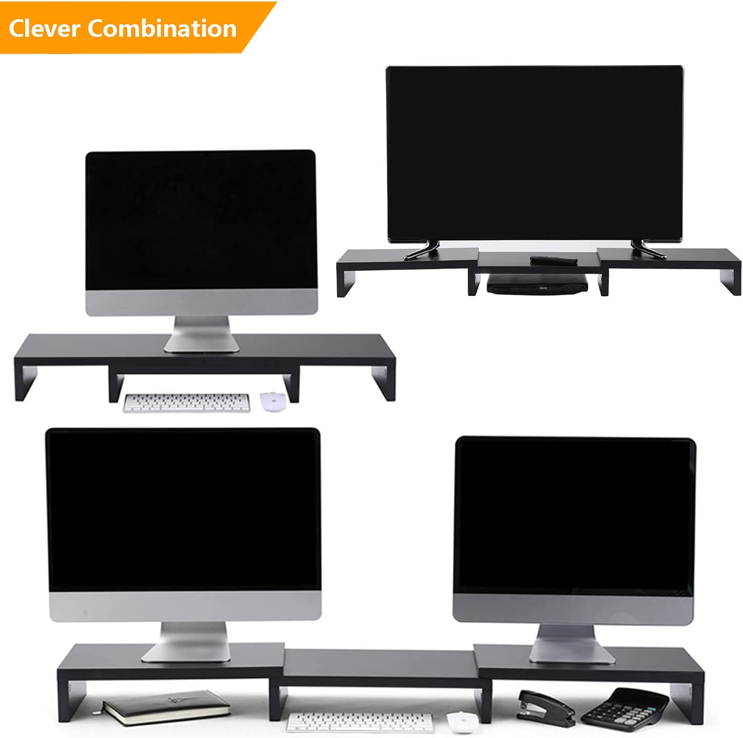 【Customizable 3 Shelf Design】Featuring adjustable length (33-48.2 inch) and angle, this desk computer stand riser can be place on a corner desk or in a straight-line, table like setup, which supports 2-3 monitors while offering enough space underneath for smaller desk essentials, or to tuck your keyboard and mouse away.