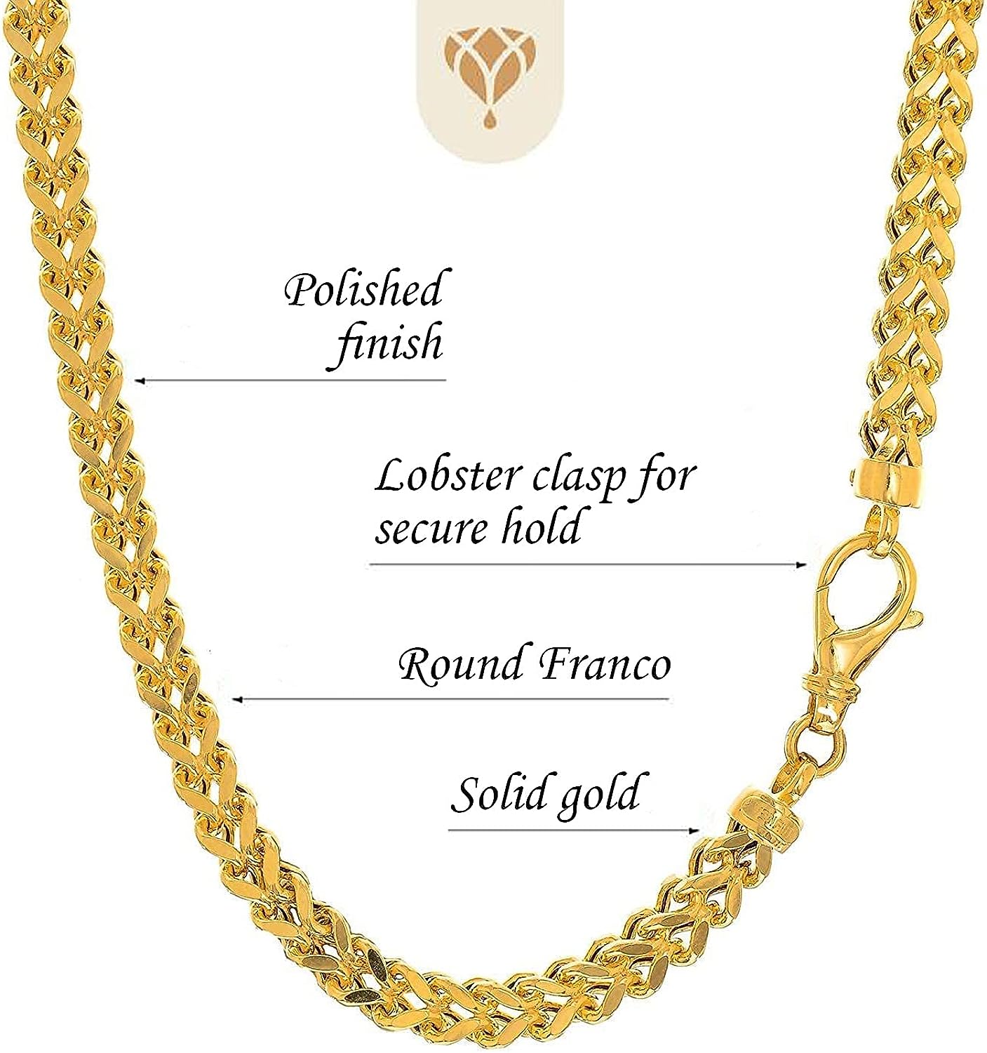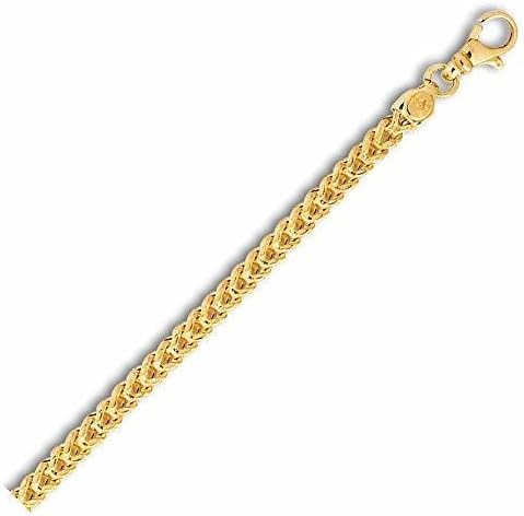 14k REAL Yellow Gold 4.4mm Shiny Diamond-Cut Square Franco Chain Necklace Or Bracelet for Pendants and Charms with Lobster-Claw Clasp (22" or 24 inch) Mens Solid Franco Chains Jewelry