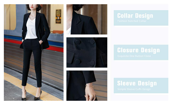 【Suitable】-Versatile women suits .Casual and classy style. Suitable for office, work, business meeting,holiday, dating, daily wear and etc.