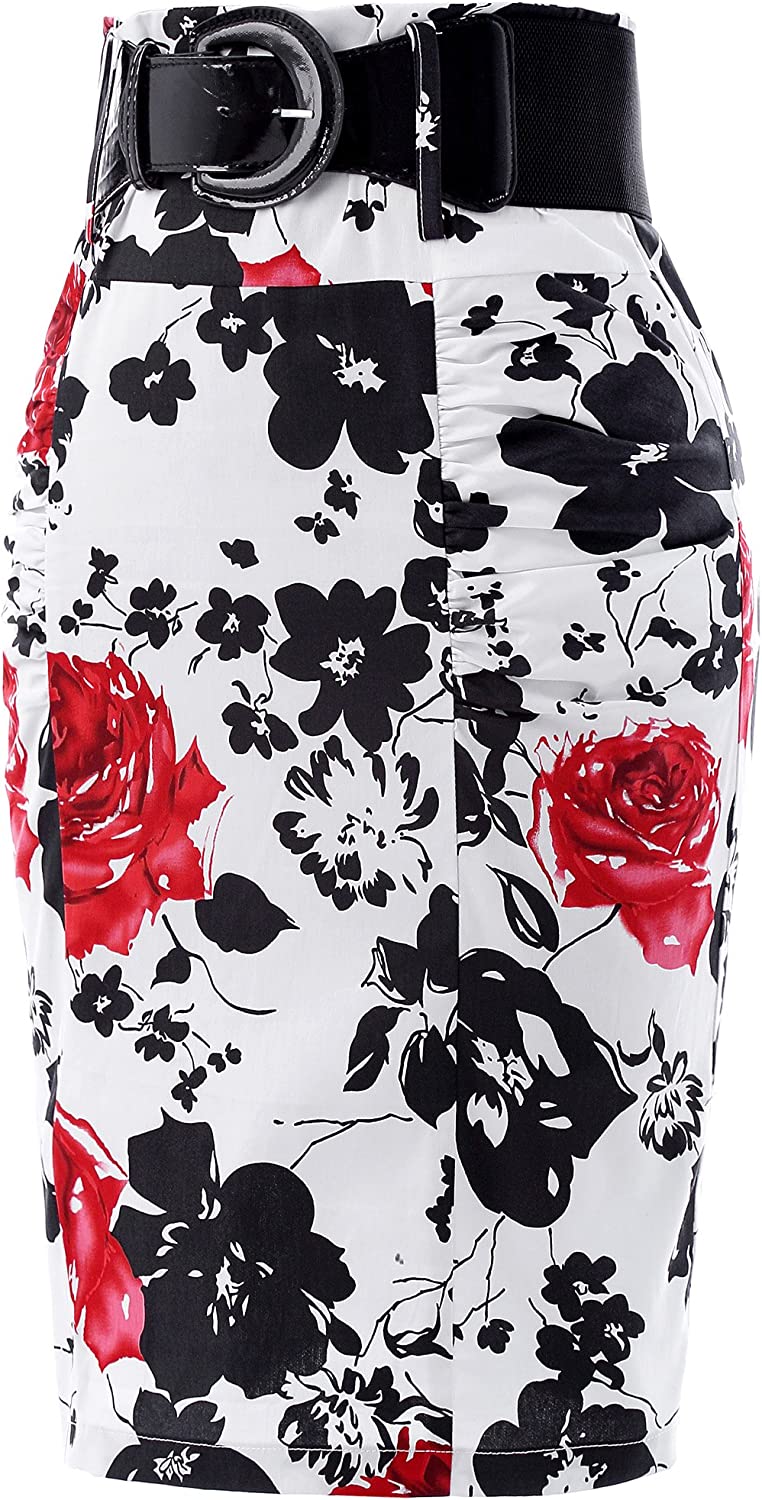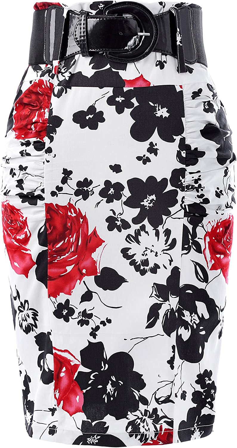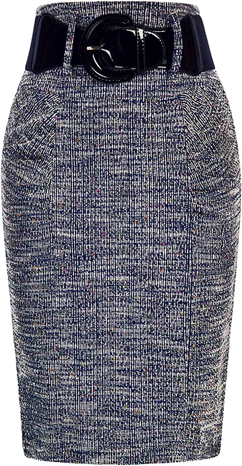 Women's Stretchy Pencil Skirt Side Pleated Business Skirts with Belt KK271(28 Color)