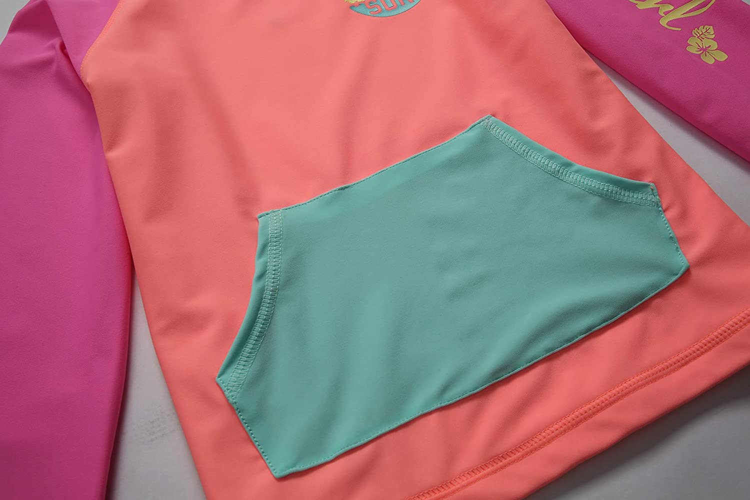 PHIBEE Girls' Rash Guard Set Long Sleeve UPF 50+ Sun Protection Two-Piece Swimwear