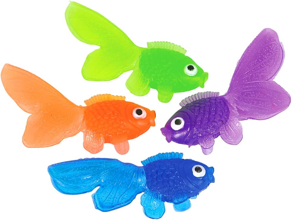 It's-O-Fish-Al.. Reel in the fun with the coolest toy goldfish!Each bulk pack of Bedwina assorted goldfish toys includes a total of 144 fishes in assorted bright neon colors. Every fish measures approximately 2 inches long from head to tail and made from high quality vinyl material. Fish toy colors include: Orange, Green, Purple & Blue. Fish are super cute and can be used for tons of different uses!Cute & Fun Must Have Party Supplies! These Bedwina mini plastic fish are great for sorting, counting and to use in a sensory table with preschoolers. With so many goldfish toys you'll have enough for entire classroom. You will be able to set up carnival games, use them as piñata filler, fishing birthday party supplies, under the sea decorations, goodie bag stuffers and more! You can even use our toy fish for learning, occupational therapy, counting, sensory bins, crafts, to add to clear, home made soap blocks, or slime.KEY FEATURES: