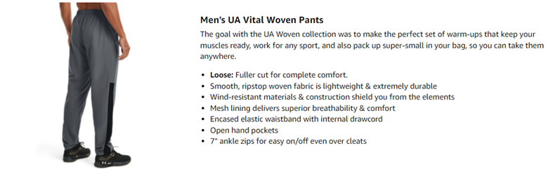 Smooth, ripstop woven fabric is lightweight & extremely durable. Wind-resistant materials & construction shield you from the elements. Mesh lining delivers superior breathability & comfort. Encased elastic waistband with internal drawcord. Open hand pockets. 7" ankle zips for easy on/off even over cleats. Inseam: 31.75".
