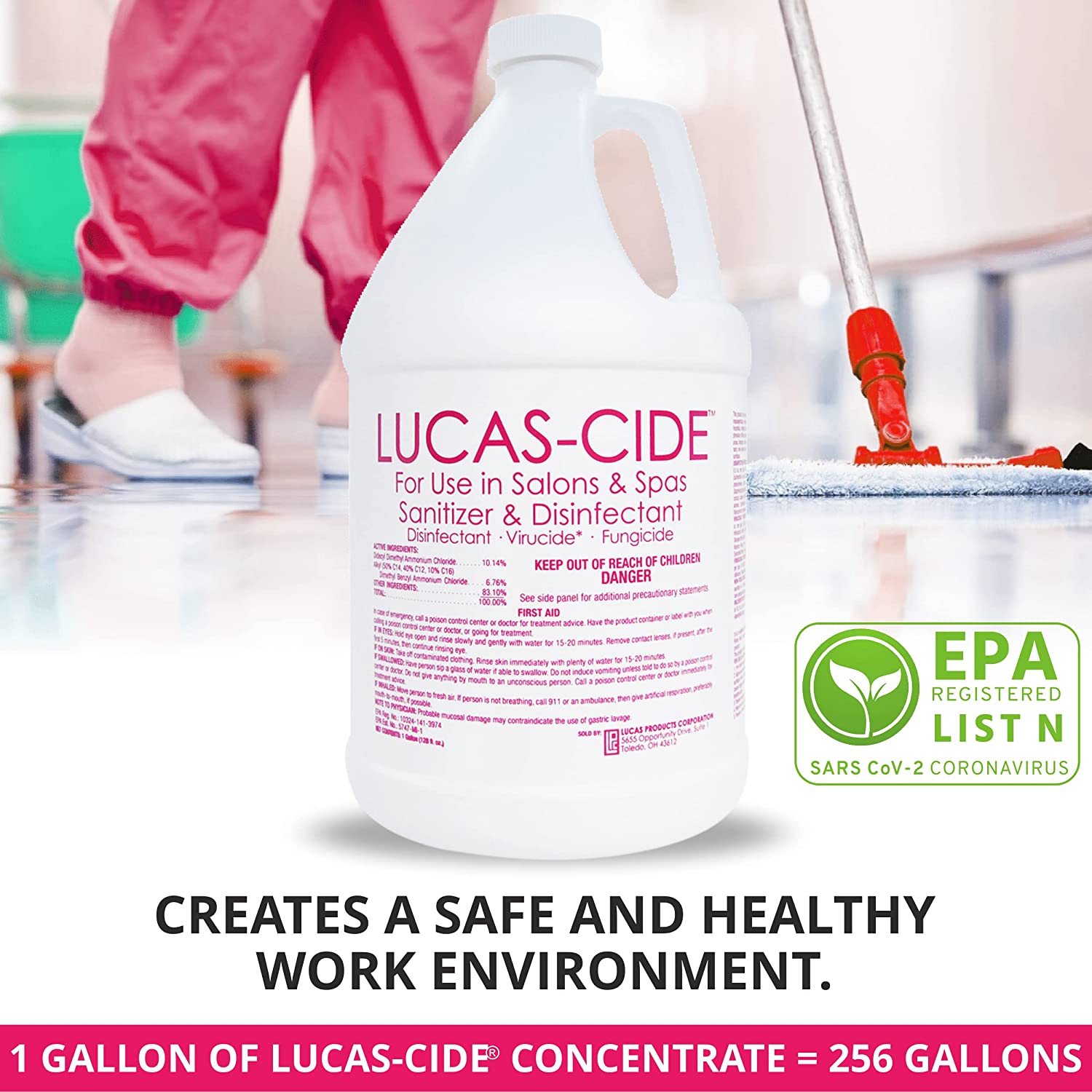 EASY TO USE: Mix 1/2 ounce of LUCAS-CIDE with one gallon of water. Use it at the end of the day on major surfaces such as counters, floors, restrooms, staff kitchens, break rooms as well as on the equipment.