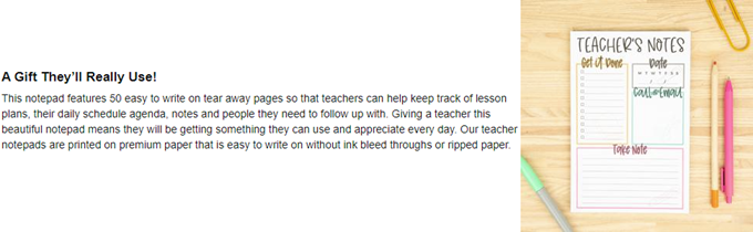 - ? THANK YOU! Show your appreciation for your child's favorite teacher with this cute, convenient and usable teacher notepad gift. Each notepad features 50 pages of premium paper that tears away easily without ripping. He or she will love using this fun and functional present!