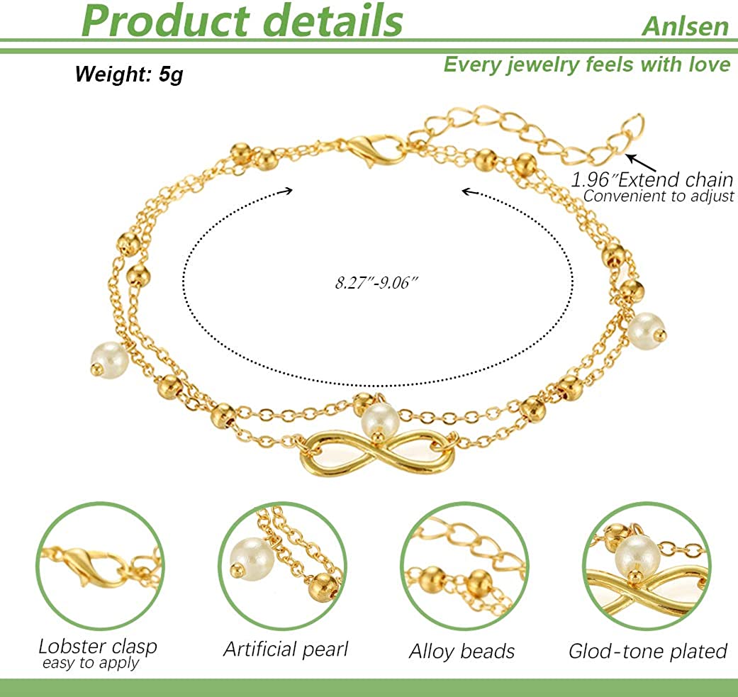 • 【STYLISH & CHARM ANKLET】Delicate and Charm Anklet Chain with Cute Snowflake, Leaf, Coin, Heart, Beads, Infinite Symbol. Cute but also Sexy, Fashion Foot Jewelry for You in Summer.Great gifts for Valentine's Day, holiday, birthday,party, anniversary, prom, graduation.