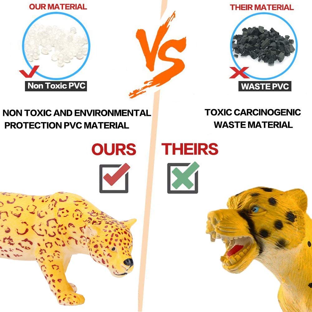 Plastic wild animals toys make your baby toddlers to have immersive experience of the wildlife in the wild.Realistic african grassland animals playset is designed for little hands and child' imagination. This large safari wild animals world set includes a assortment of amazing plastic animals in realistic colors. Your children will love this set of friendly lovable animals figures.Our wildlife animals action figures toys are brand new and high quality. No Duplicated. Cute and realistic. 100% Safe, Environmentally Friendly.
