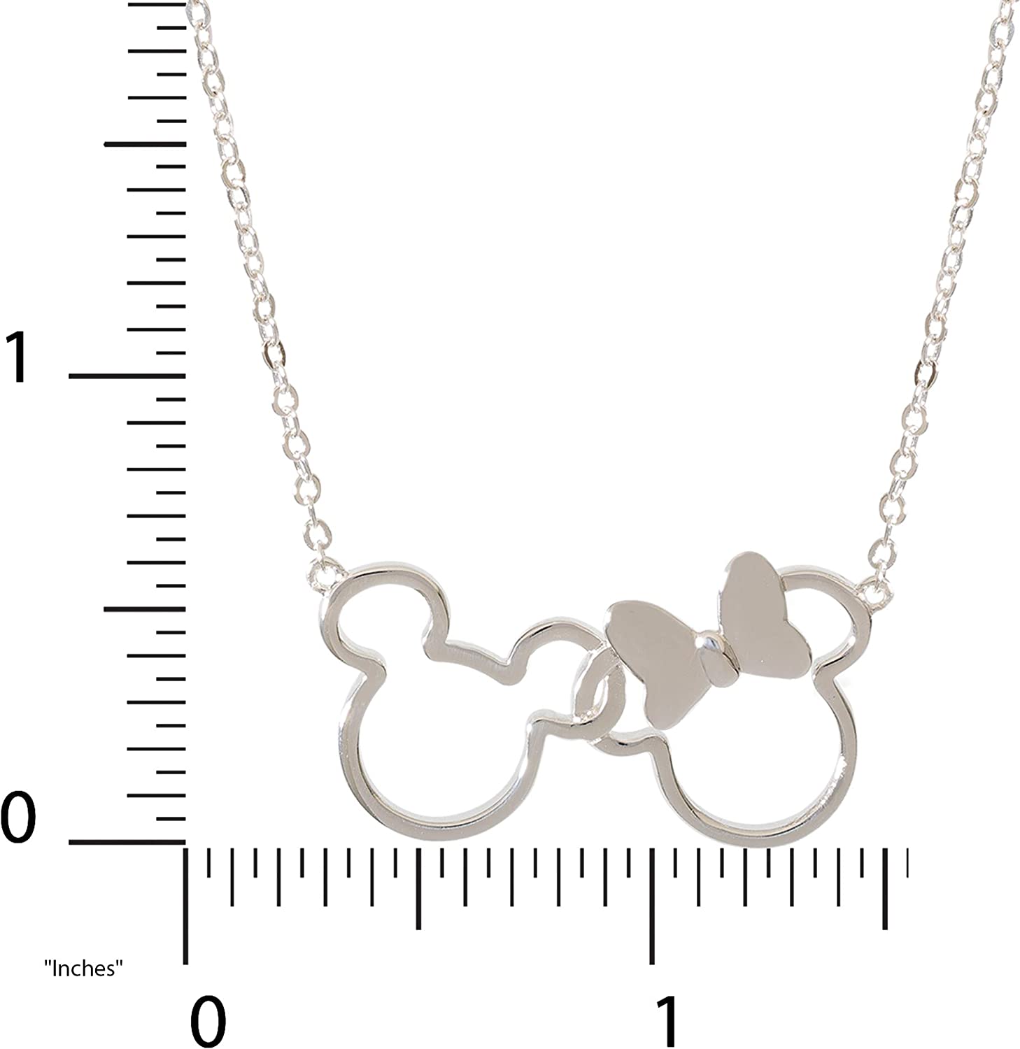 Disney Mickey and Minnie Mouse Jewelry for Women, Interlocking Mickey and Minnie Pendant Necklace; Silver Plated, Two Tone, 18"