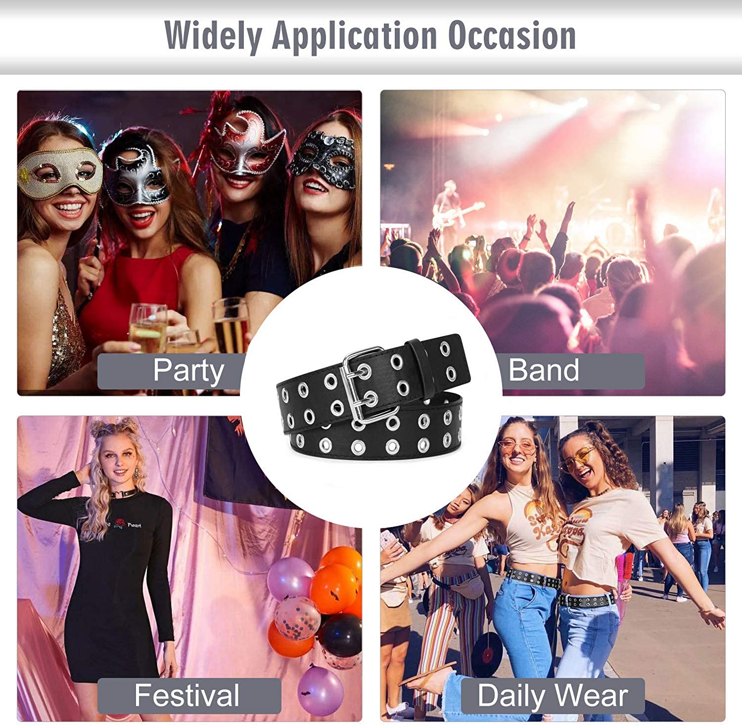?Stylish Punk Belt: The double prong buckle really compliments the belt style and keeps the belt secure around your waist. The width of the buckle is about 1.97". Stylish square buckle match with studded grommet strap. This punk belt will easily give your stylish look. This belt is a great addition for any punk/goth/etc look for women.