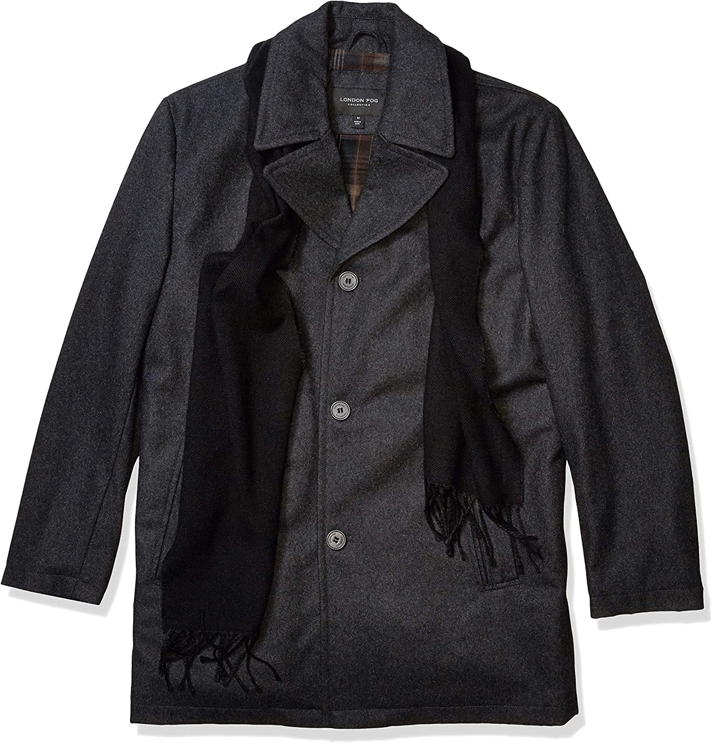 LONDON FOG Men's Amity 34" Wool Blend Car Coat with Scarf