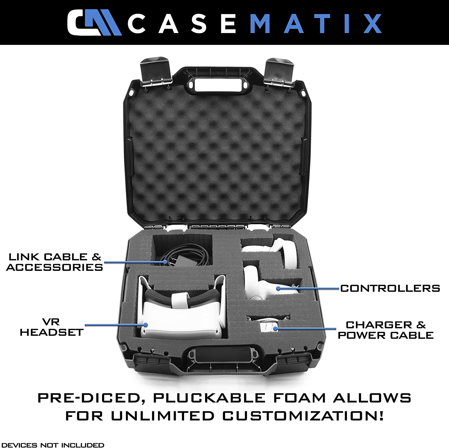 CASEMATIX Hard Case Compatible with Meta Quest 2 and Oculus Quest 2 VR Gaming Headset & Accessories - Hard Case with Customizable Foam fits Elite Strap and Other Accessories