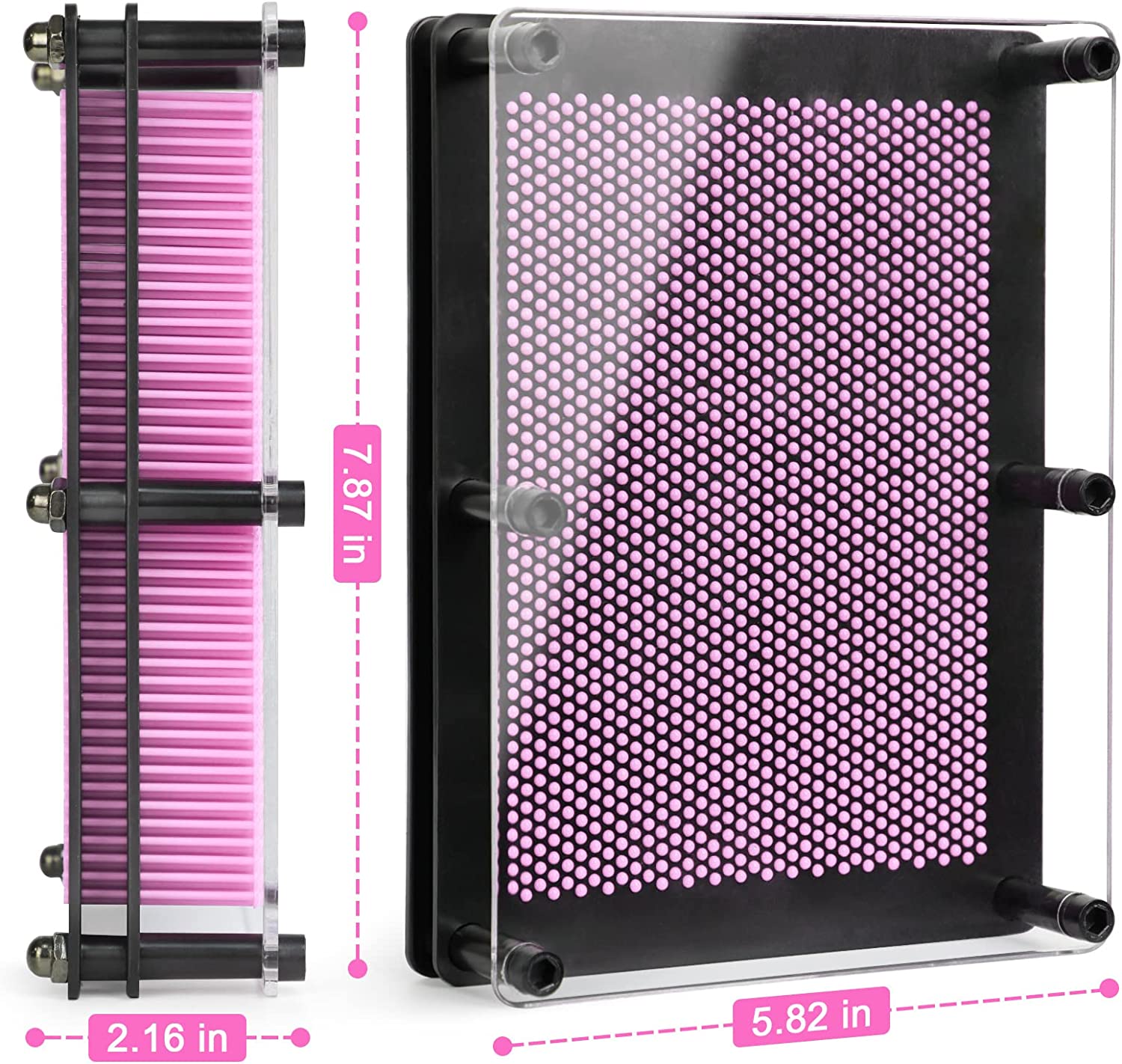 • 【PINS TOY PACKAGE】Plastic pin art toy for kids won't take up too much space but are sure to make a big impression whenever they are displayed. Pin art game carton package 8.5 x 6.5 x 2.8 In. Weight:0.97 LB. The executive desk toys are made of plastic pins and a sturdy transparent frame. The needle impression toy is very durable to play.