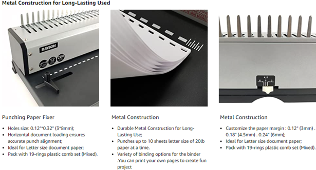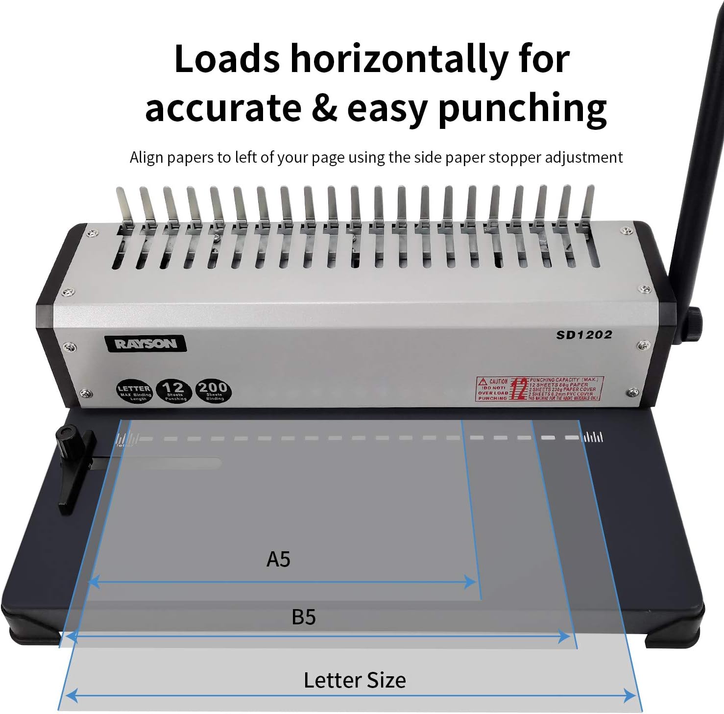 RAYSON SD1202 Comb Binding Machine, 19 Holes, Max Punching Letter Size, with Comb Set Binder for Daily Binding