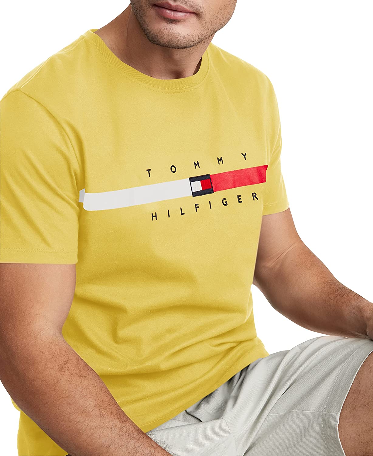 - Tommy Hilfiger’s graphic men’s t-shirt is a best-seller for good reason. Cut in pure cotton and then washed for softness, it’s a year-round favorite that’s destined to be on heavy rotation in any wardrobe.