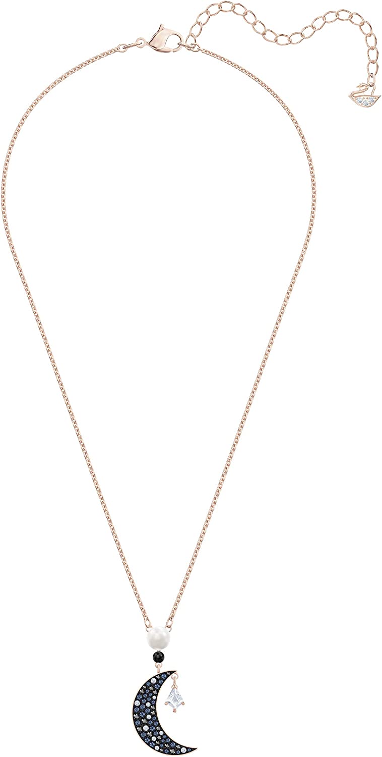 Items delivered: 1 x Swarovski Symbolic Collection Moon pendant necklace, 15 3/4 inch rose-gold tone chain and 1 1/4 x 5/8 inches pendant made of white and blue crystals, with Swarovski necklace box