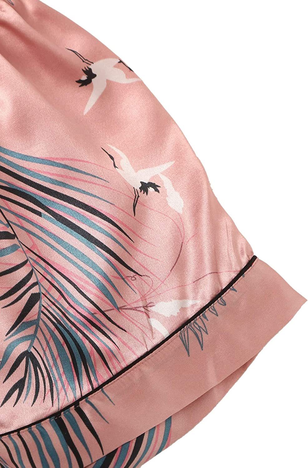 Satin cami pajama set with long sleeve button down shirt loungewear