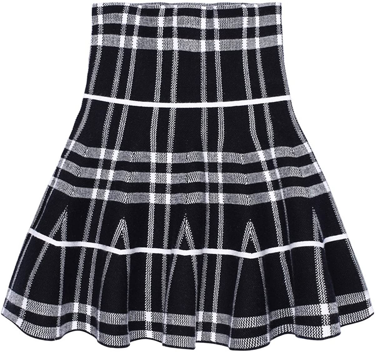 storeofbaby Little Big Girls High Waist Knitted Flared Pleated Skater Skirt Casual