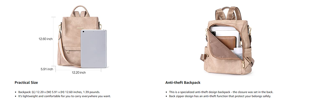 [HIGH-QUALITY MATERIAL]: Warm Tip: This backpacks made of oil wax material looks brighter, under different lighting condition, sometimes it feels shiny. This women backpack purse is made of high quality water resistant soft PU leather, metal accessories and fabric lining, which is fashionable and durable.Detachable shoulder strap made of canvas for reinforcement and durability.
