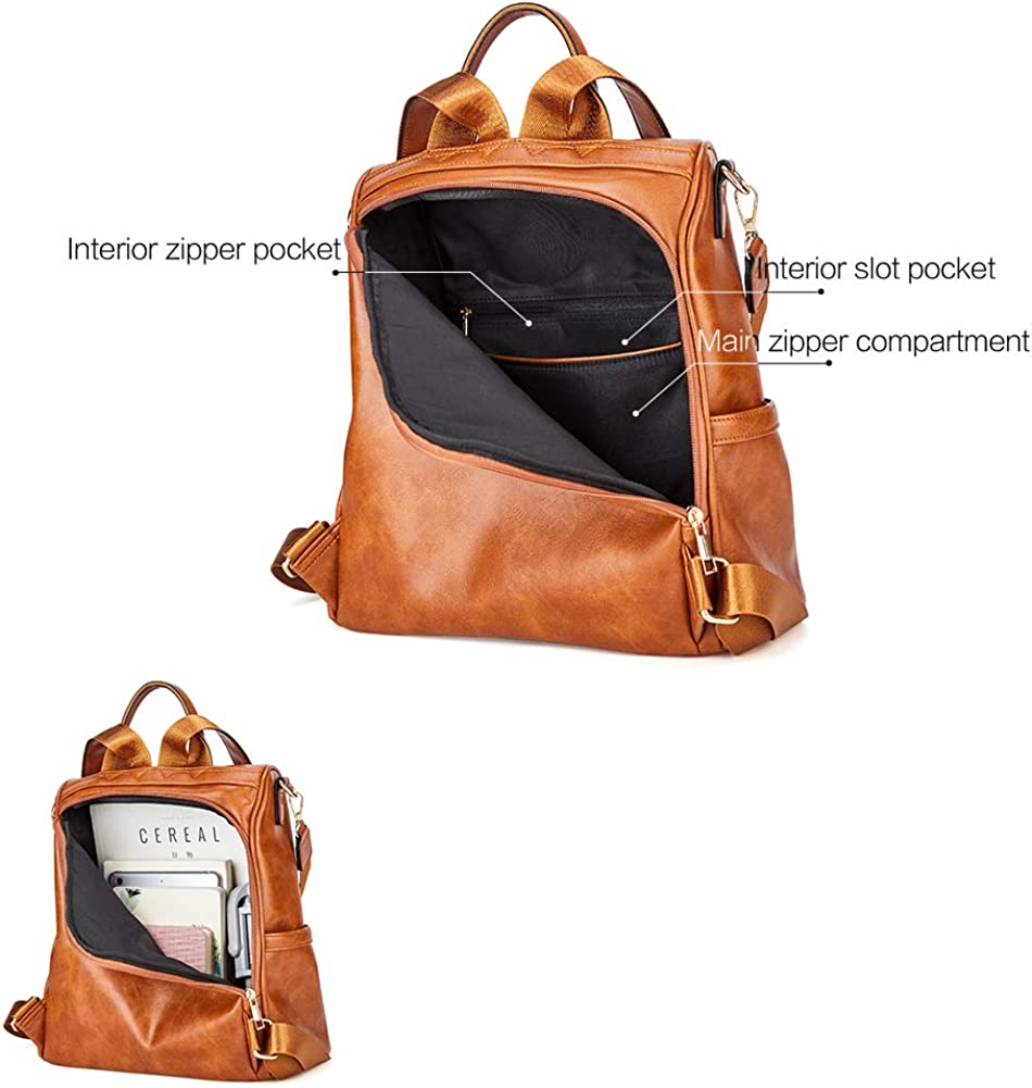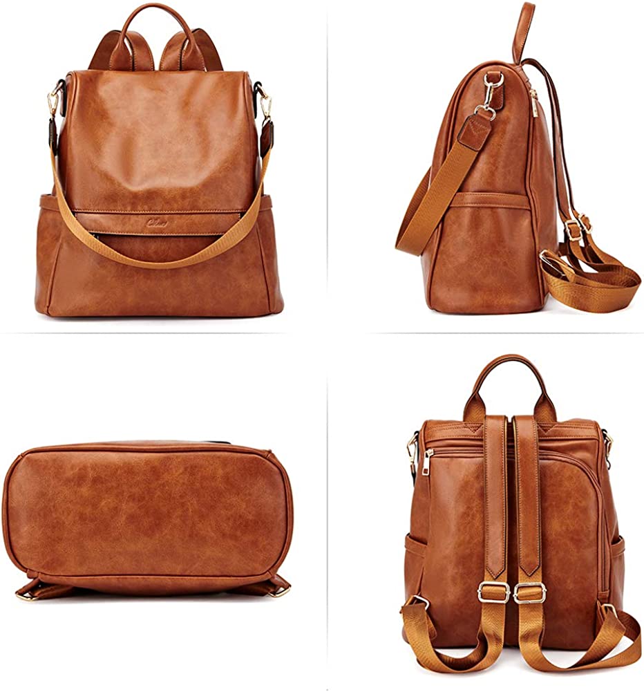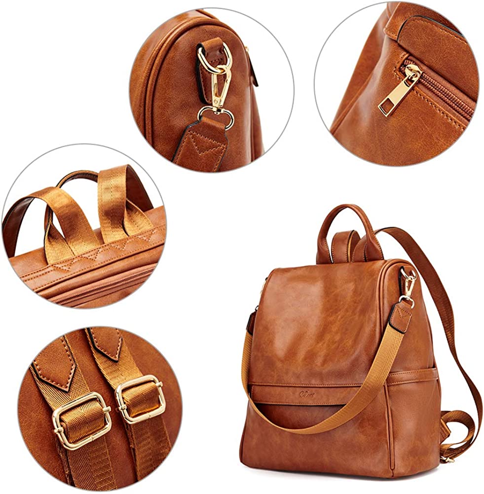 • [HIGH-QUALITY MATERIAL]: Warm Tip: This backpacks made of oil wax material looks brighter, under different lighting condition, sometimes it feels shiny. This women backpack purse is made of high quality water resistant soft PU leather, metal accessories and fabric lining, which is fashionable and durable.Detachable shoulder strap made of canvas for reinforcement and durability.