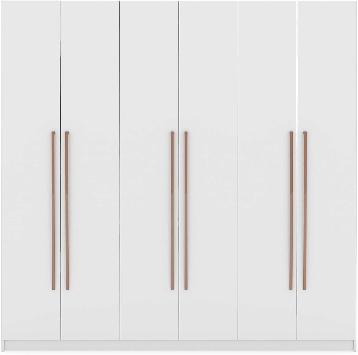 Give Your Wardrobe a Glamorous Look with the Gramercy Wardrobe Armoire Closet by Manhattan Comfort, Featuring a Beautiful Contemporary Style in a Classic White Finish.