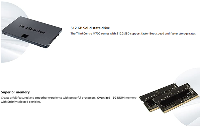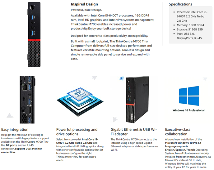 • Lenovo Think Center M700 Tiny Desktop PC, Intel Quad Core I5-6400T 2.2GHz up to 2.8G, 16GB Memory,512GB SSD