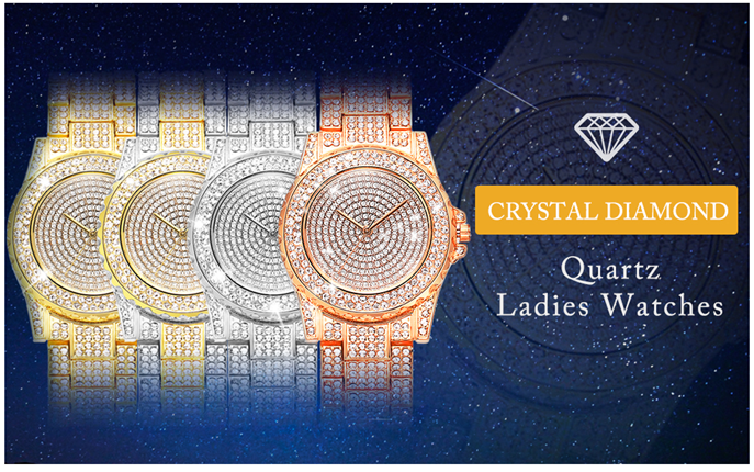 Crystal diamonds quartz women watch round dial with featuring hour marks, provide precise time keeping. Imported quartz movement, analog display with simple dial,easy to read. Luxury fashion style, very comfortable to wear.Key scratch resistant watch face made of high hardness glass. Suitable for any parties and common life for women to show your style.