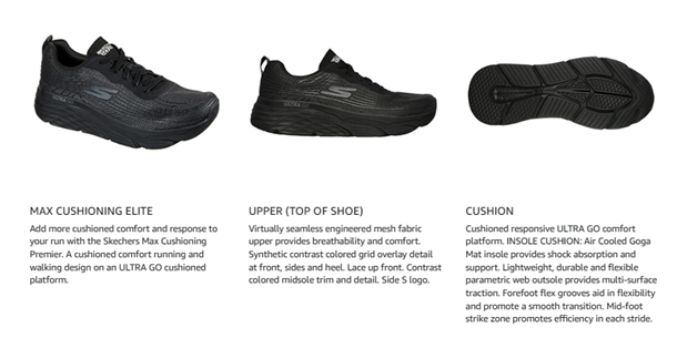 - Add more cushioned comfort and response to your run with the Skechers Max Cushioning Elite. A cushioned comfort running and walking design on an ULTRA GO cushioned platform.