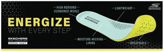 - MIDSOLE CUSHION: Cushioned responsive ULTRA GO comfort platform. INSOLE CUSHION: Air Cooled Goga Mat insole provides shock absorption and support.