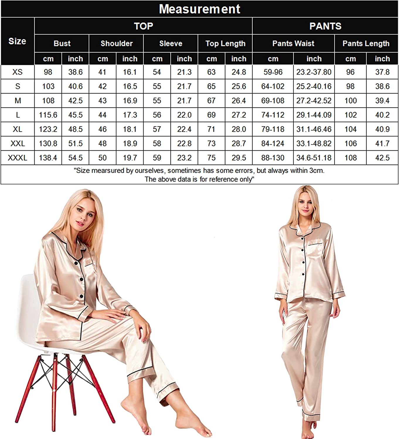 Gift: Women's silk pajamas for women is made of high quality imitation silk fabric, it is soft and natural shiny. Great Choice For your Wife, Girlfriend, Mother, Sister and Doughter as a Birthday gift and Great Present for New Year, Valentine's Day, Christmas Day, Bridal Party Gifts, Honeymoon Vacation or other Festivals or Anniversaries.