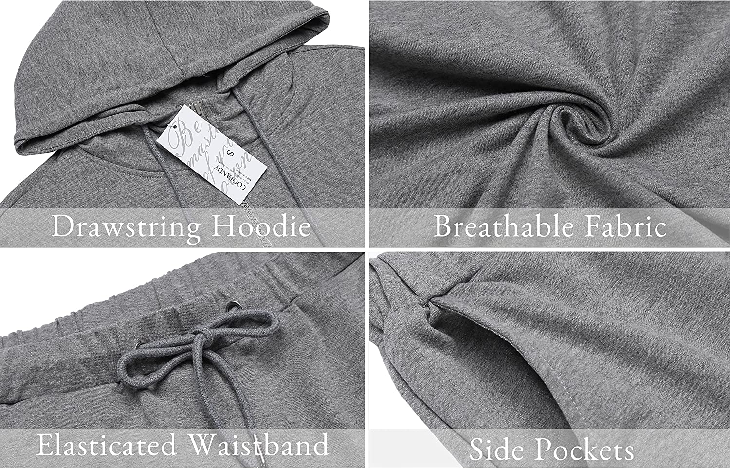 【Feature 2】Pockets on both Hoodie and pants,convenient for you to bring small things with you, like keys, phone. Full-zip front offers easy on-and-off. Hooded makes your warm and block wind and dust.