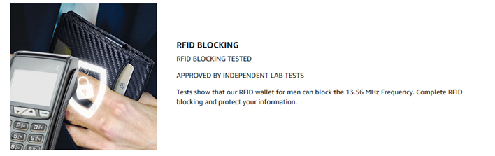 RFID BLOCKING TESTED & APPROVED BY INDEPENDENT LAB TESTS - Tests show that our RFID wallet for men can block the 13.56 MHz Frequency. Complete RFID blocking and protect your information