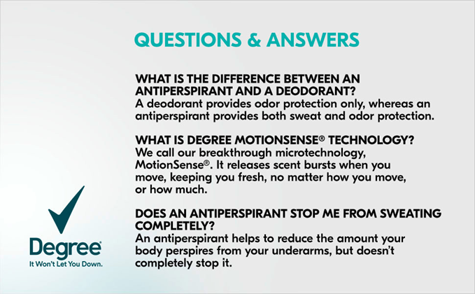 - At Degree, we want to inspire the confidence in everyone to move more. We’re here to support and share your journey through an antiperspirant deodorant that moves with you