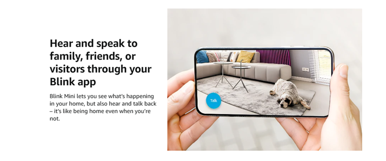 See, hear, and speak to people and pets in your home from your smartphone with Blink Mini’s live view and two-way audio.
