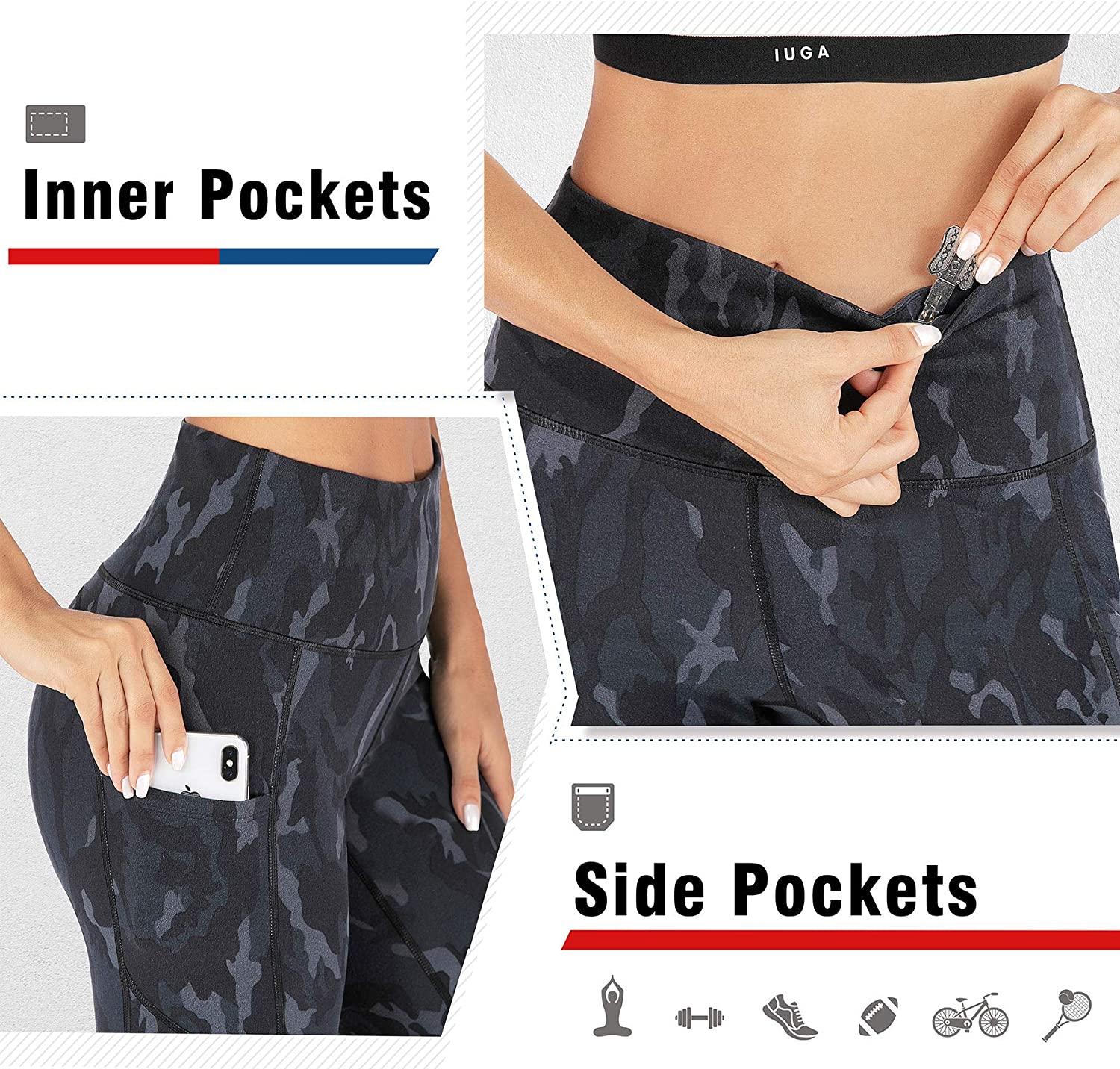 IUGA Leggings with Pockets for Women High Waisted Printed Yoga Pants for Women Workout Leggings for Women with Side Pockets