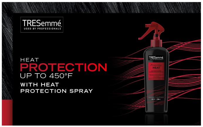 Most of us are guilty of going straight for our heat styling tools, but eventually, that heat causes split ends and dry hair. So, before you heat style, you need a hair protectant spray to prep and protect your locks. Use TRESemmé Protecting Heat Spray for a finished look that's shiny and undeniably soft. Would you ever grab a hot pan without oven mitts? No. And when heat appliances like flat iron spray and curling irons can reach up to 450°F, you should never use them on your hair without a heat protectant spray for hair either. Our TRESemme Heat Protection is a hair heat protectant designed to enhance hair's flexibility to re-form and hold its shape without getting damaged for ultimate hair heat protection. It's perfect hair protection from heat for those of us who love to style but need to restore vibrancy and shine to dried-out, damaged hair. How to use: Spray this heat protection spray on your hair liberally 6-8 inches away, from mid-shaft to ends, on both damp hair before you blow-dry and dry hair before curling or flat ironing. TRESemmé is an industry leader in providing you with salon-ready hair quality products.