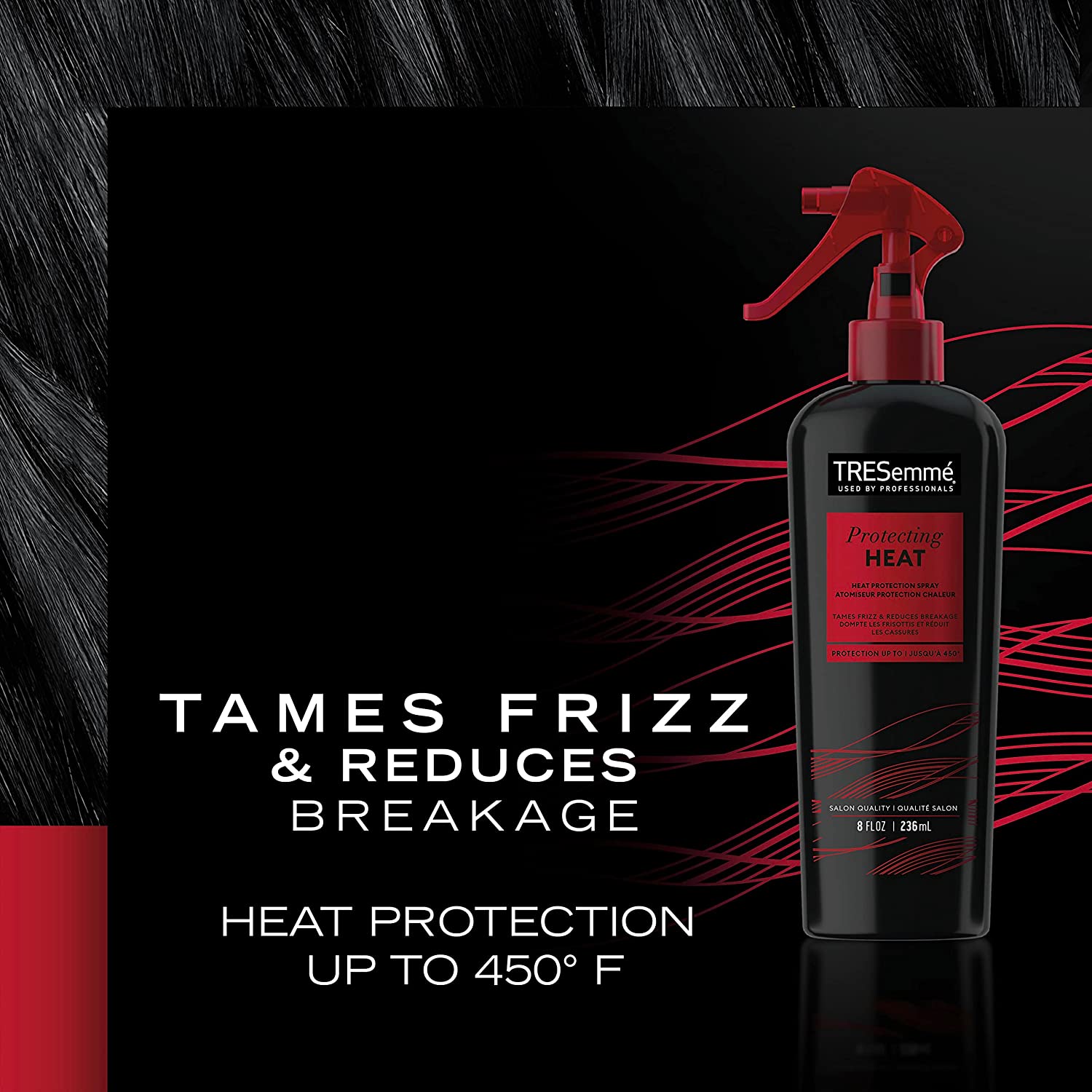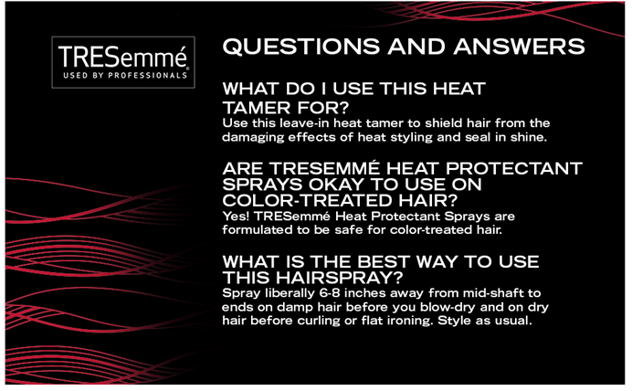 • SHIELDS HAIR AND SEALS IN SHINE: TRESemmé Protecting Heat Spray works as a heat protector and stands up to flat irons and curling irons by guarding against heat damage and friction