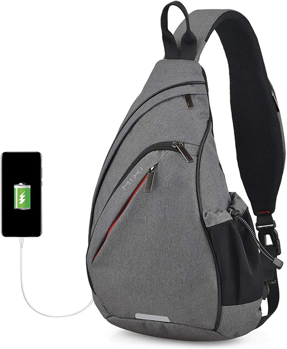 USB SLING BACKPACK - Casual daypack backpack with USB charger outside and charging cable inside, convenient to charge any devices while walking( NOT include power bank).