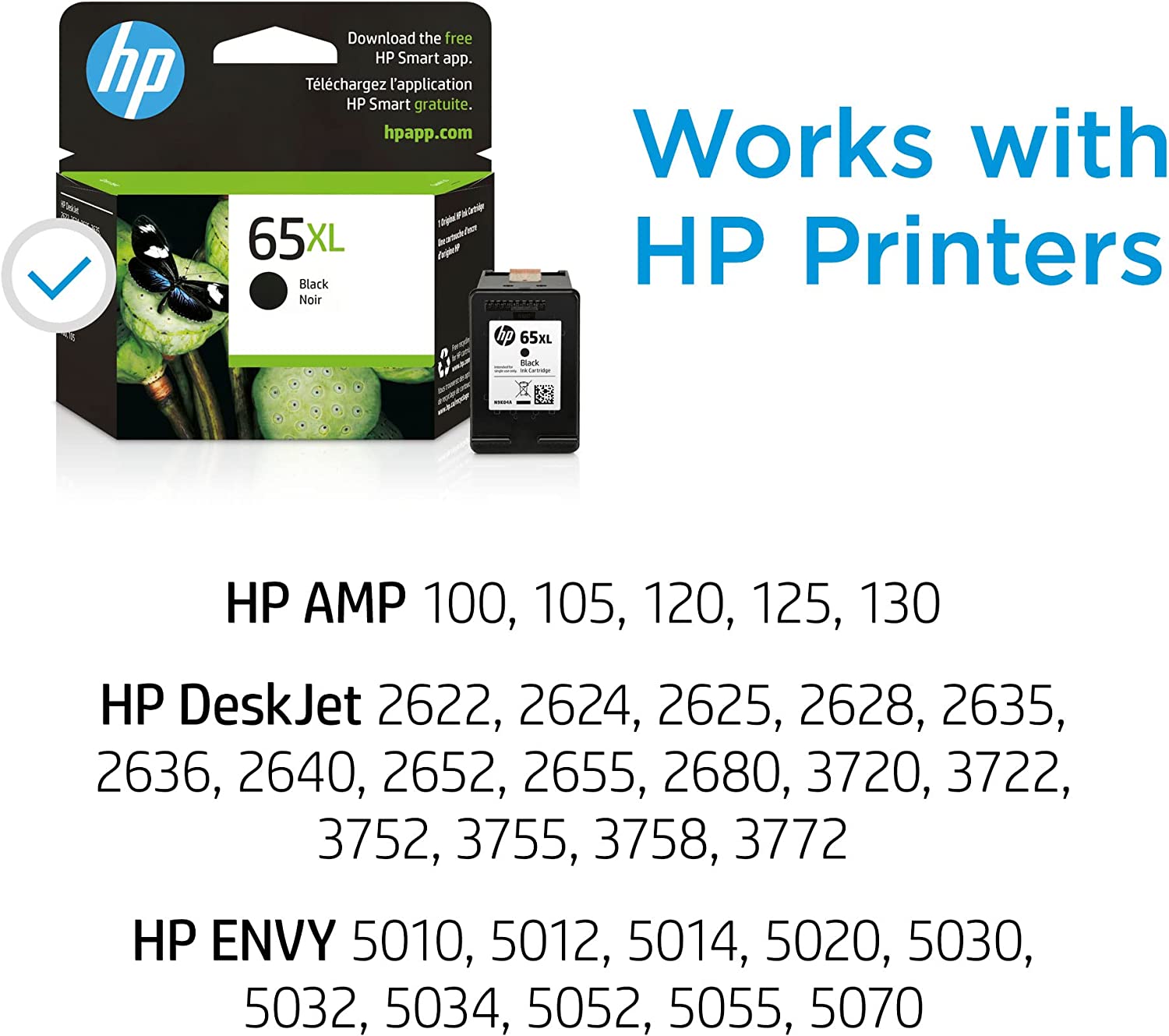 HP 65XL Black High-yield Ink Cartridge | Works with HP AMP 100 Series, HP DeskJet 2600, 3700 Series, HP ENVY 5000 Series | Eligible for Instant Ink | N9K04AN