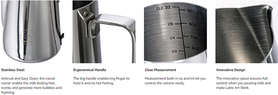 - ☕【wide application】The milk steaming pitcher can help you in a lot of ways, such as frothing or steaming milk cream for a latte, measure liquids, serve milk or cream. You can use it at home, office, cafe or hotel . The frothing pitcher also can be a nice gift for parties or festivals