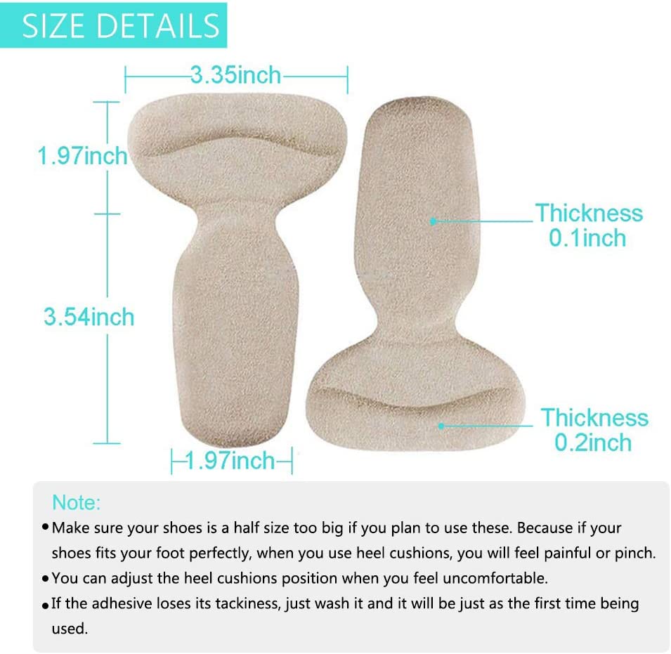 Sticky Design:Heel Pads have strong sticky backing that keeps them in place firmly. You can remove the adhesive backing and place the pads in the inside heel of shoes. Fixed for a while.