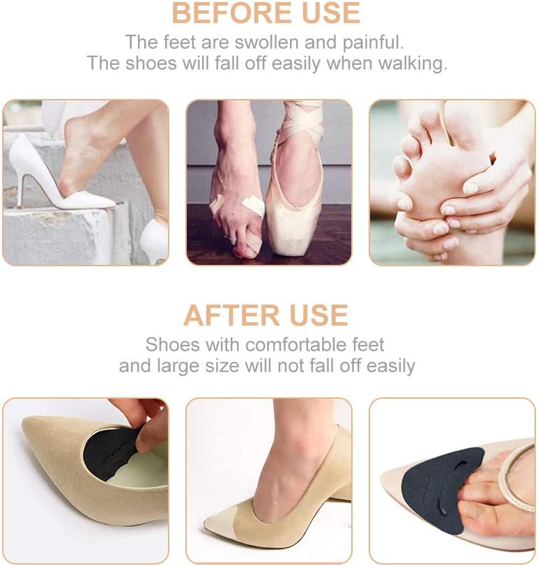 Benefits: High density foam toe inserts specially developed for better toe protection make loose shoes more fit to your feet, prevent your feet from slipping in and out of your shoes and relieve effectively the pain caused by the impact of slippage.